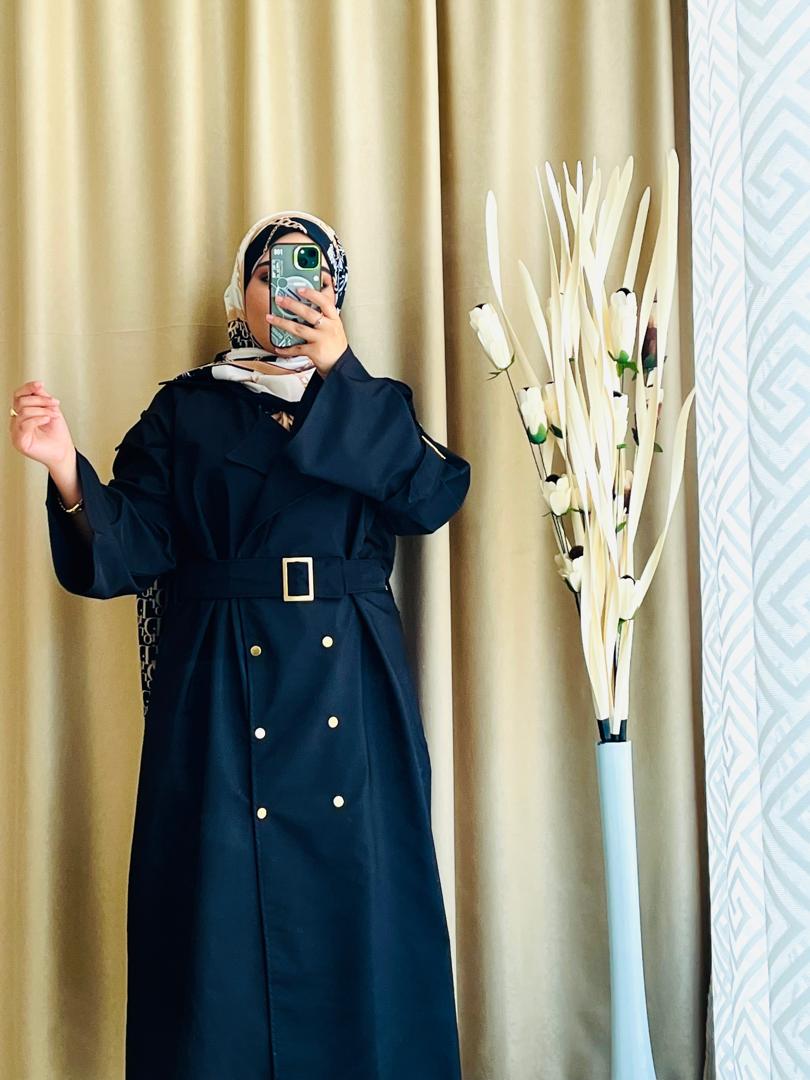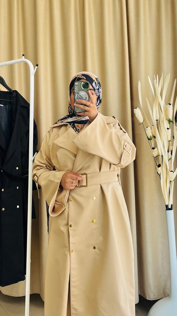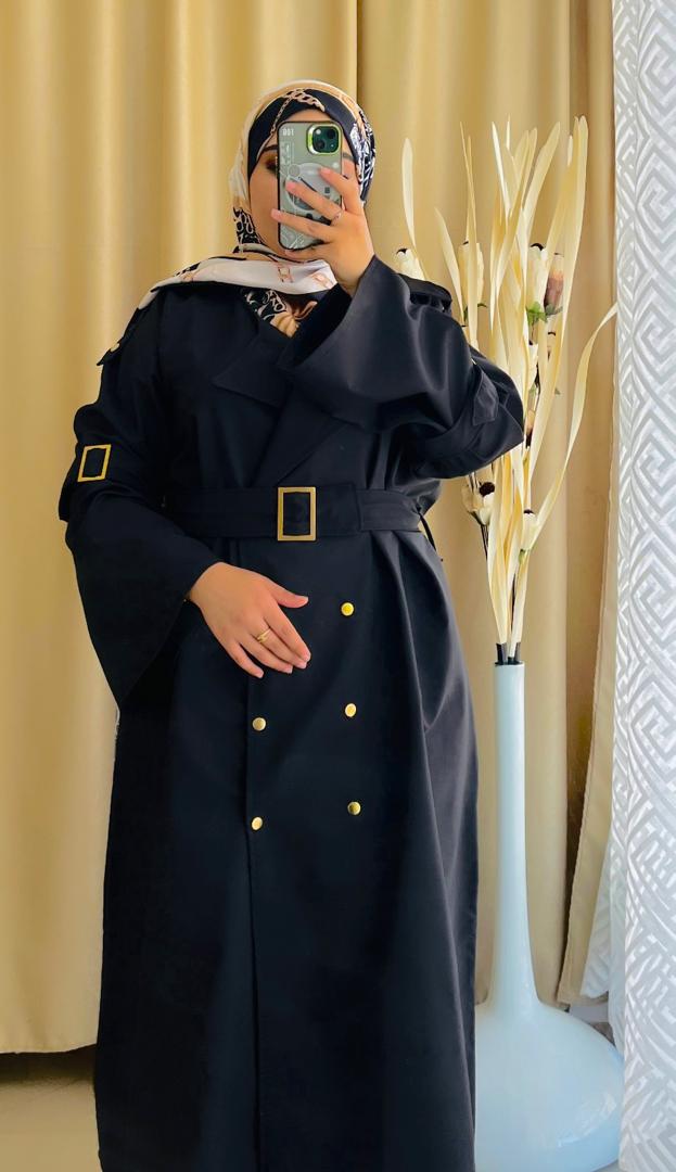 أزرار معدنية ذهبية أنيقة ولمسات خياطة دقيقة تعكس جودة التصميم وتمنحه لمسة فخمة.